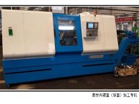 本機(jī)床用于汽車差速器殼體內(nèi)腔平面及(ji)球(qiu)面的(de)加工。機(jī)床為臥式雙面(mian)布置,左(zuo)端為(wei)DSS精鏜頭和液壓(ya)滑臺組成(cheng),右端為(wei)DSS精鏜頭(從動軸,無動力)和液壓(ya)及液壓(ya)滑臺組成。中間為夾具,夾(jia)具(ju)安裝在專用數(shù)控移動工作臺上,用于锪面進(jìn)給(gei)。后方為雙位送(song)刀機(jī)械手,上件后送刀機(jī)械手送粗加工刀進(jìn)去,動力頭頂(ding)緊刀具機(jī)(ji)械手退(tui)回,數(shù)控工作臺左右工進(jìn),完成粗锪面工序。刀具回位后,機(jī)(ji)械(xie)手將粗锪刀取走,另一(yi)機(jī)械(xie)手送精锪刀進(jìn)入工件,重復(fù)上次循環(huán),完成(cheng)精加工。一次裝(zhuang)夾一個工件??赏ㄟ^更換、調(diào)整(zheng)定位夾緊元件(jian),實現(xiàn)多品種的(de)互換加工。